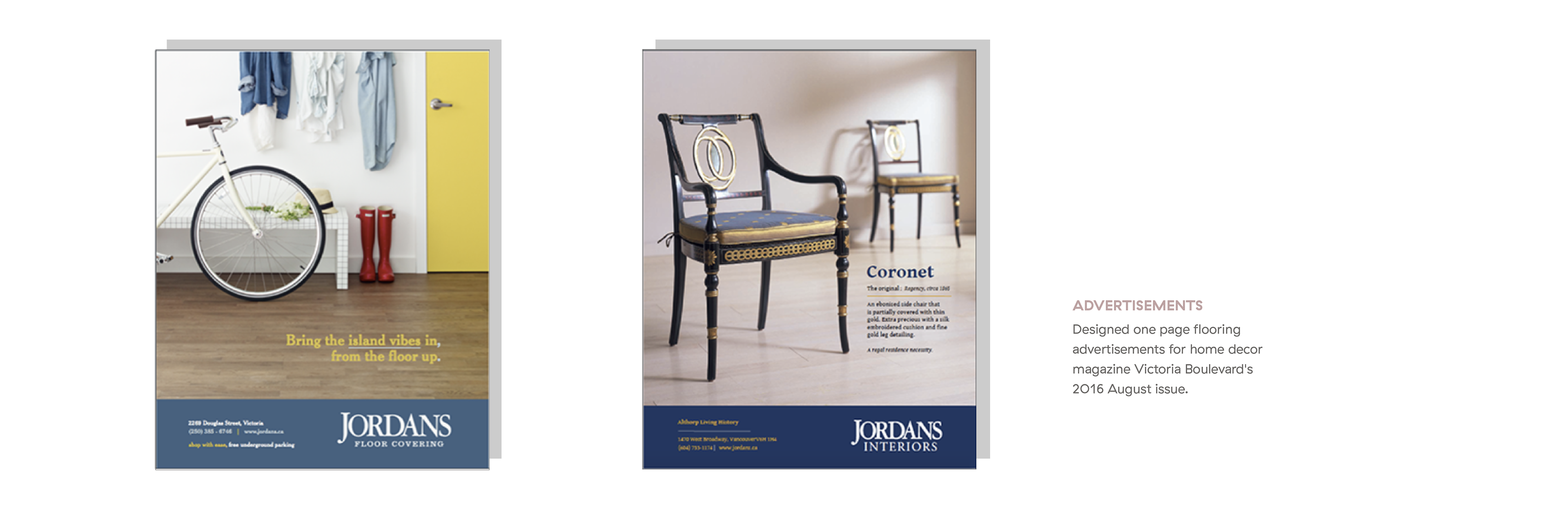 Contracted in 2016 to design various magazine and newspaper advertisements for publications including the Province, Vancouver Sun, Victoria's Boulevard and Taste of life.